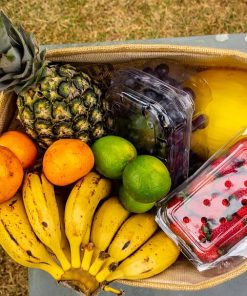 A cesta da Horta Saudável contém uma seleção das melhores frutas da estação, que passaram serão levadas direto do produtor para a sua casa.